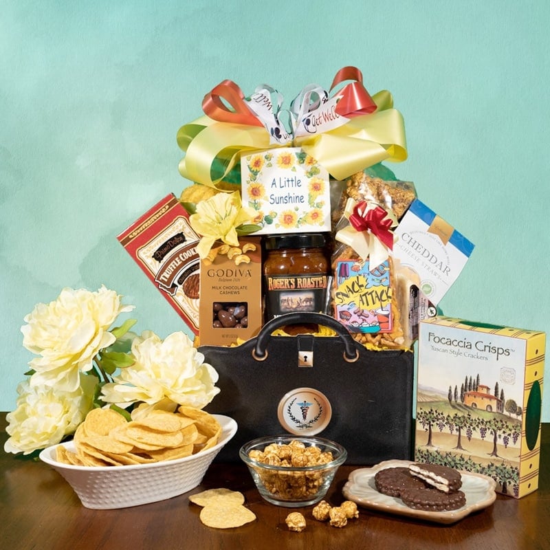 These get-well gifts are types of employee care packages and corporate gift boxes, and usually come from gift-sending services.