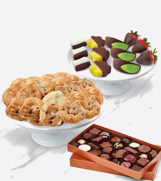 The One Sweet Spread Bundle has a range of delicious treats, including two dozen cookies, chocolate-dipped fruits, and a Rocky Mountain Chocolate Factory sampler box.