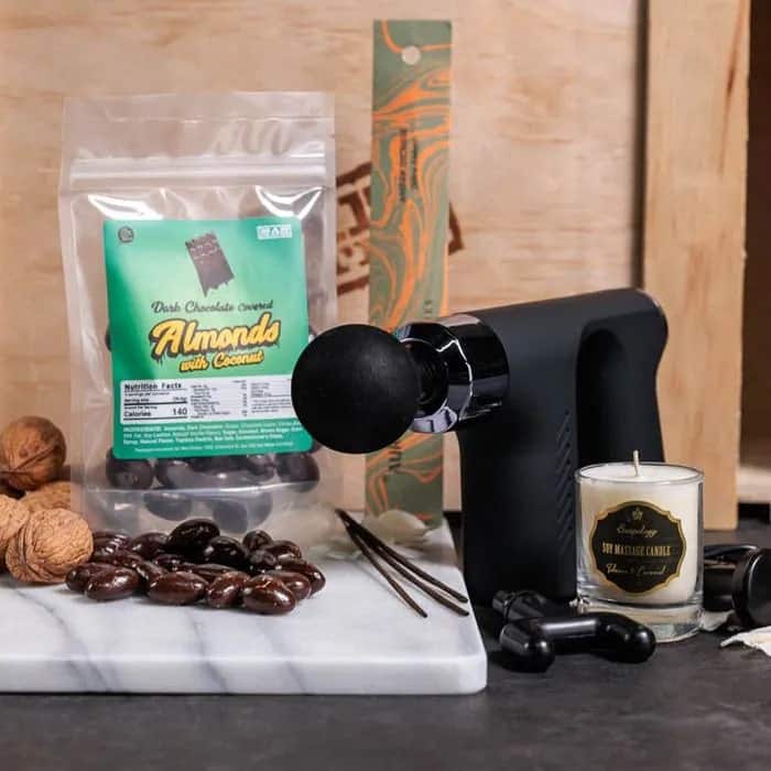 The Relax to the Max Massage Crate from Man Crates is great for coworkers who need to unwind. This box contains a massage gun, a tobacco-and-caramel scented candle, amber incense, and chocolate-covered almonds.