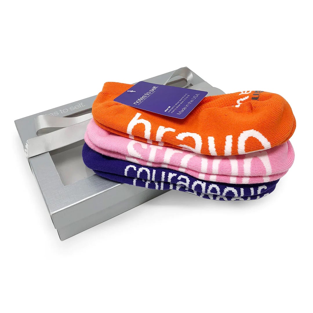 Notes to Self also gives back to the community by donating socks to women, children, and homeless populations in need.