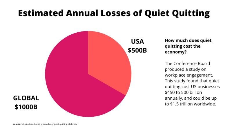 The Conference Board produced a study on workplace engagement. This study found that quiet quitting cost US businesses $450 to 500 billion annually, and could be up to $1.5 trillion worldwide.