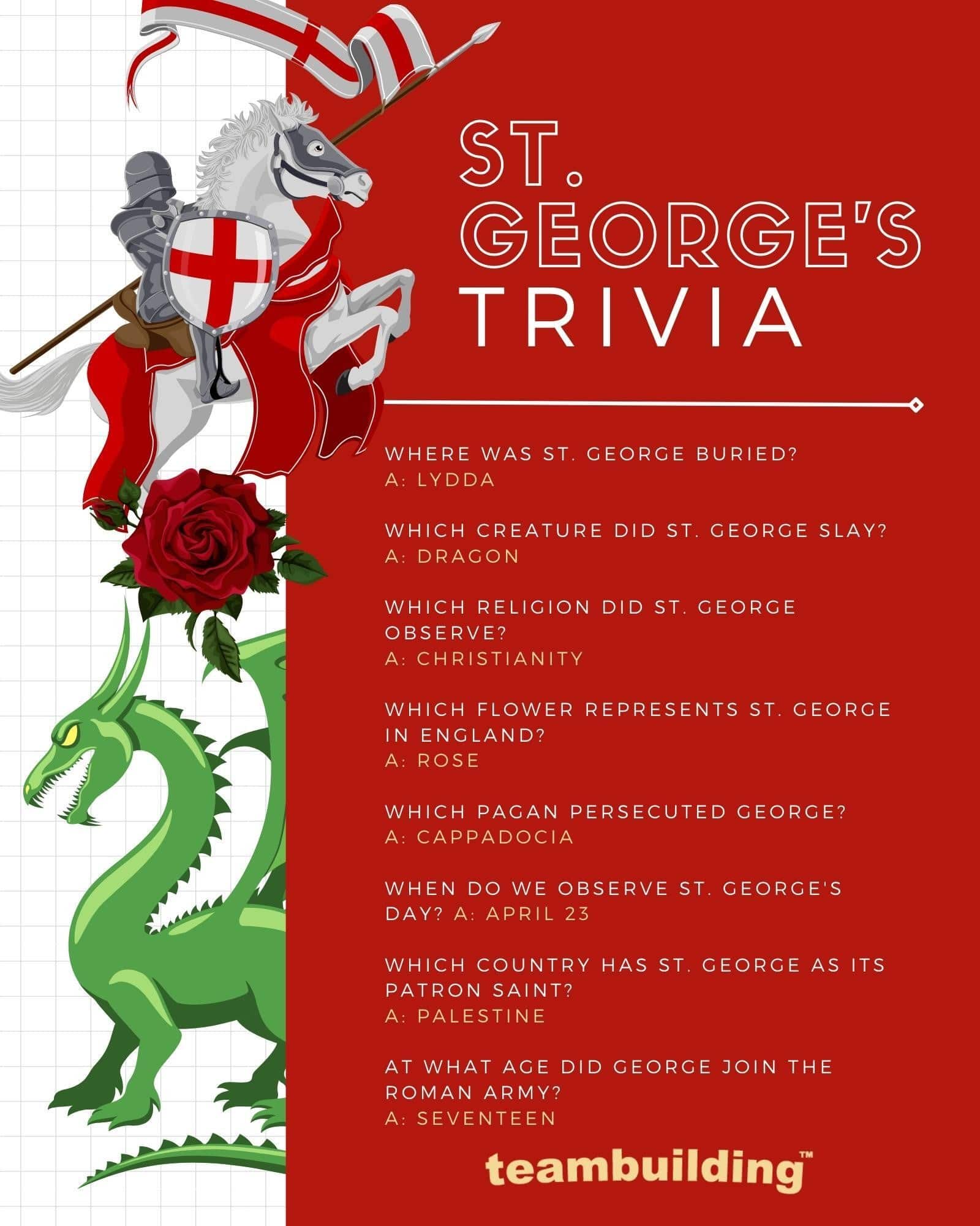 Trivia questions are among the best St. George Day games. Students will have fun and learn more about Saint George during this exercise. When preparing categories, base questions on your students’ capabilities. However, you can always add challenging trivia to keep your students on their toes.