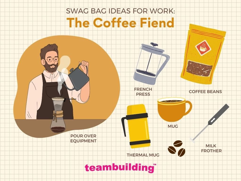 Coffee gift sets are one of the best swag bag ideas for employees. These gifts are equal parts practical and enjoyable, and these presents offer the promise of a pick-me-up when teammates need to power through the work day. It is a must to include a company mug to enjoy the coffee in, as well as a special blend to brew during those coffee dates with coworkers. You can also include items to elevate the coffee-drinking experience such as mug warmers, milk frothers, or a stencil with the company logo to make coffee art.