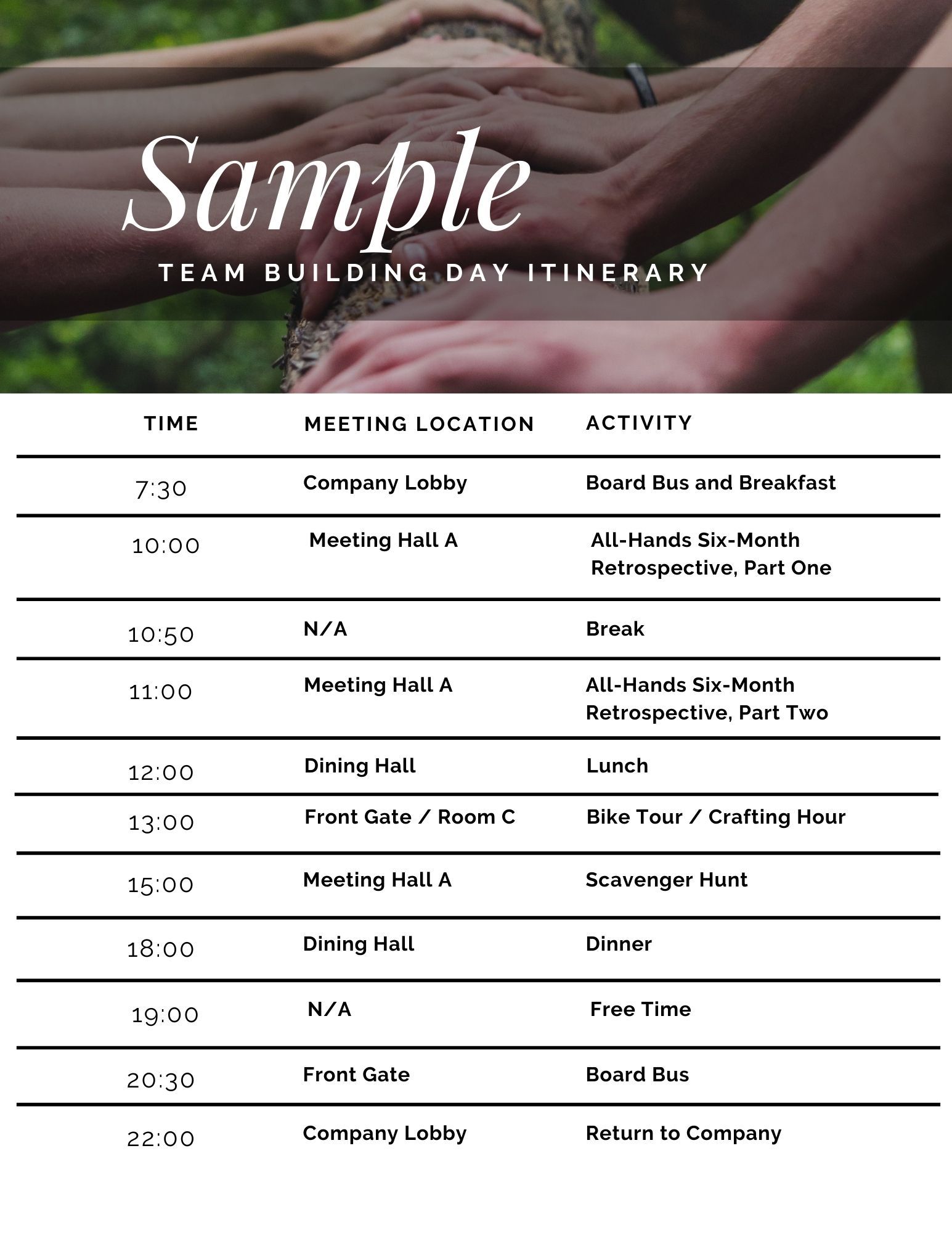 Team building day itinerary