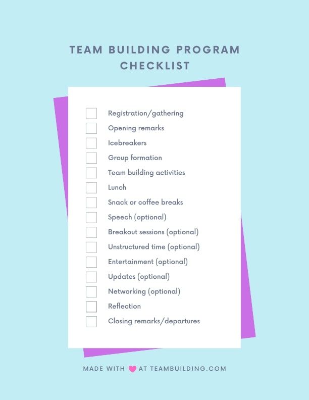 We created this handy checklist so that you remember all the essentials when crafting your own team building agenda.