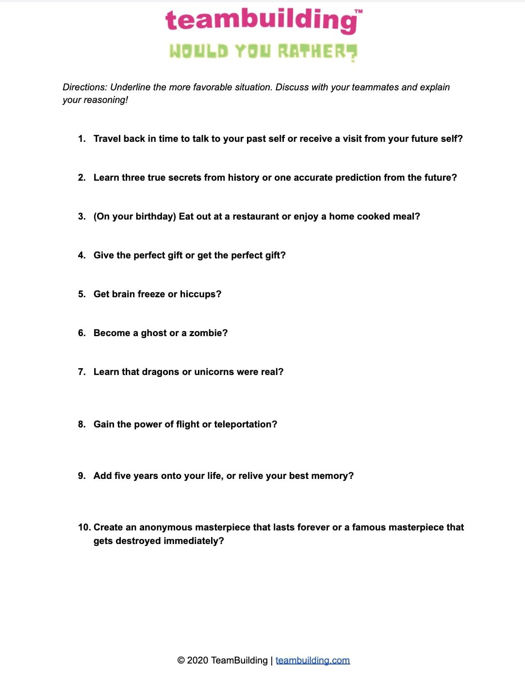 Check out more Would You Rather questions.
