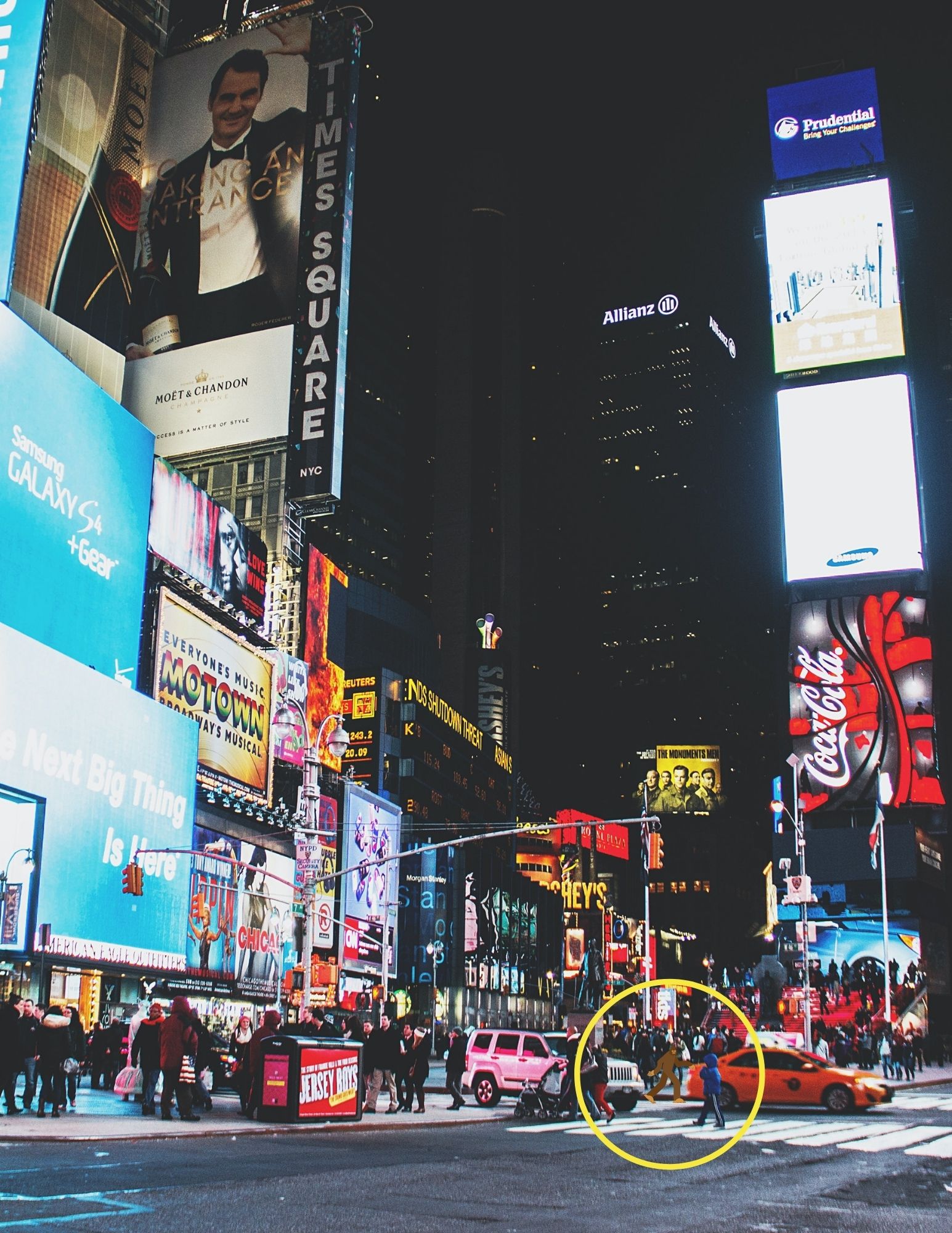 Feel free to get creative and add Sasquath into non-woodsy scenes such as your company retreat, Mars, the Mona Lisa, the presidential inauguration, or a Katy Perry concert.