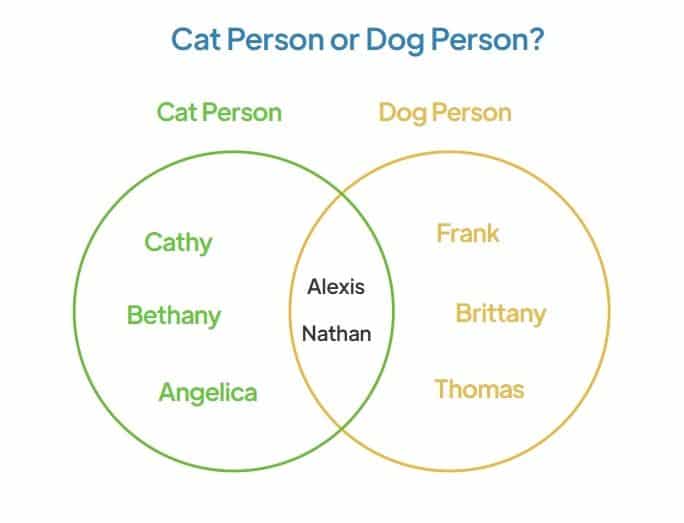 To try this icebreaker, choose a topic ahead of time, like, “Are you a cat person or a dog person?” Then, go to Text Magic to create a free Venn diagram. You can customize each setting, like the background color, font color, and text size. Next, add titles to each side. You can ask teammates to share whether they are a cat or dog person, then write their names down in the respective circle. Employees who like both can go in the middle of the diagram. At the end, the whole team can see who has the same preferences!