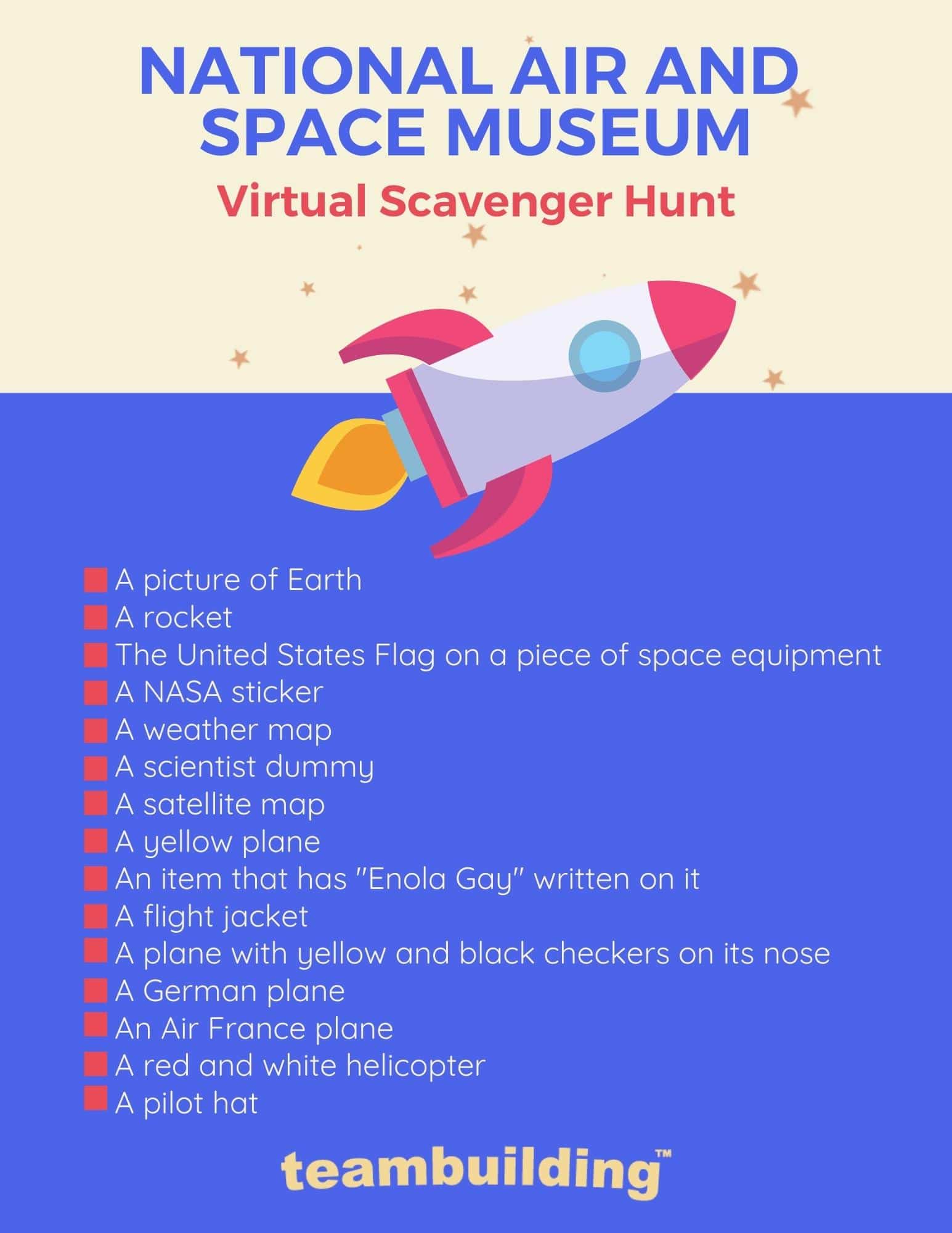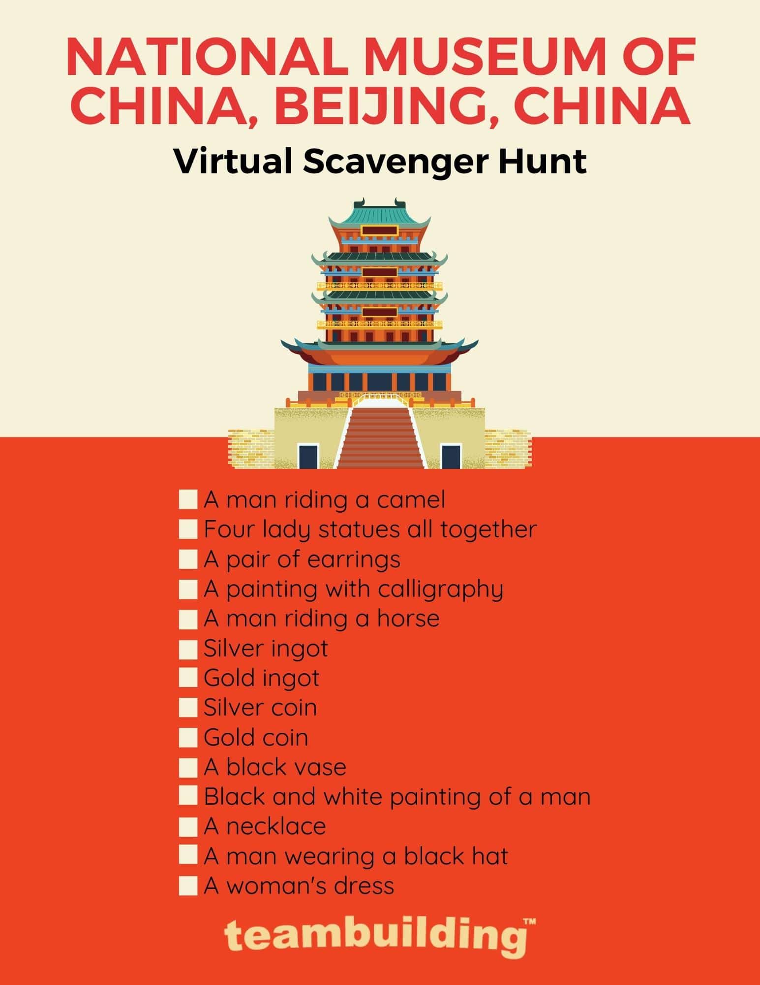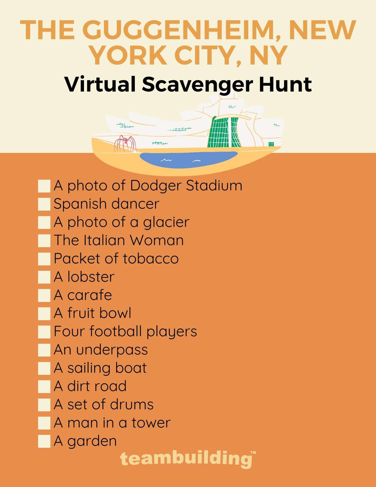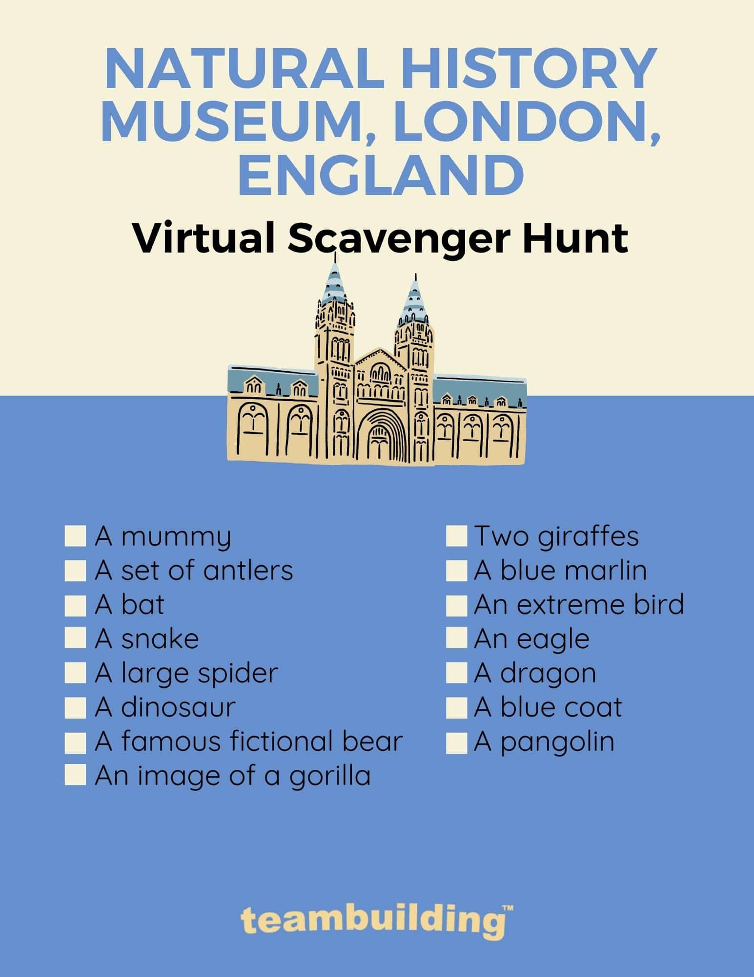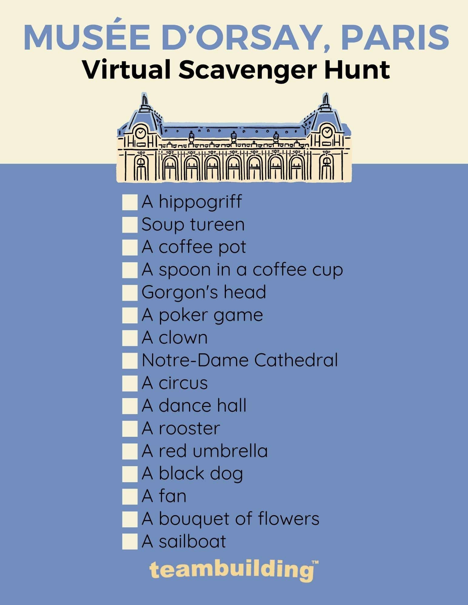 Virtual museum scavenger hunts are opportunities to bring a team or group of students together for a fun team building activity. This activity is especially helpful for virtual teams who do not gather often. These hunts are also opportunities to explore museums and places that your scavenger hunters may not have explored otherwise.