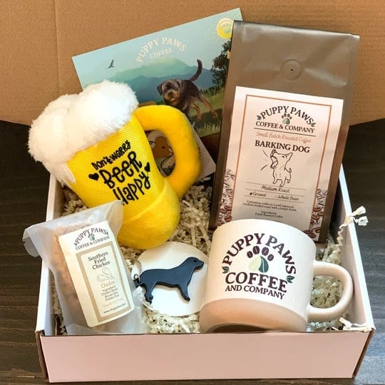 Learn more about the Puppy Paws Barks & Brews Gift Box.