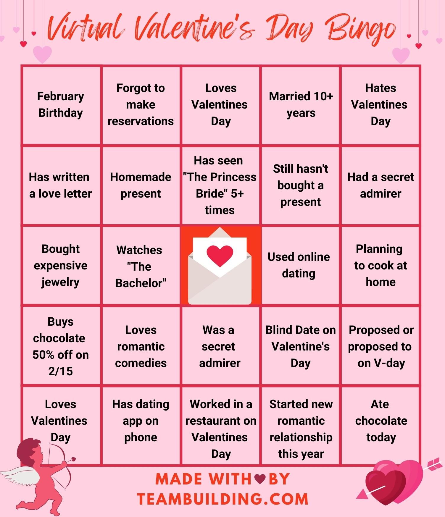 For more inspiration, check out our list of virtual team building ideas, and add a Valentine’s spin to any of the activities on that list.